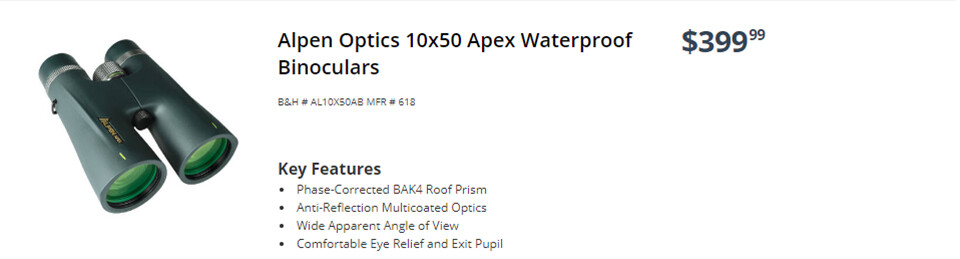 알펜 에이펙스 10×50 쌍안경